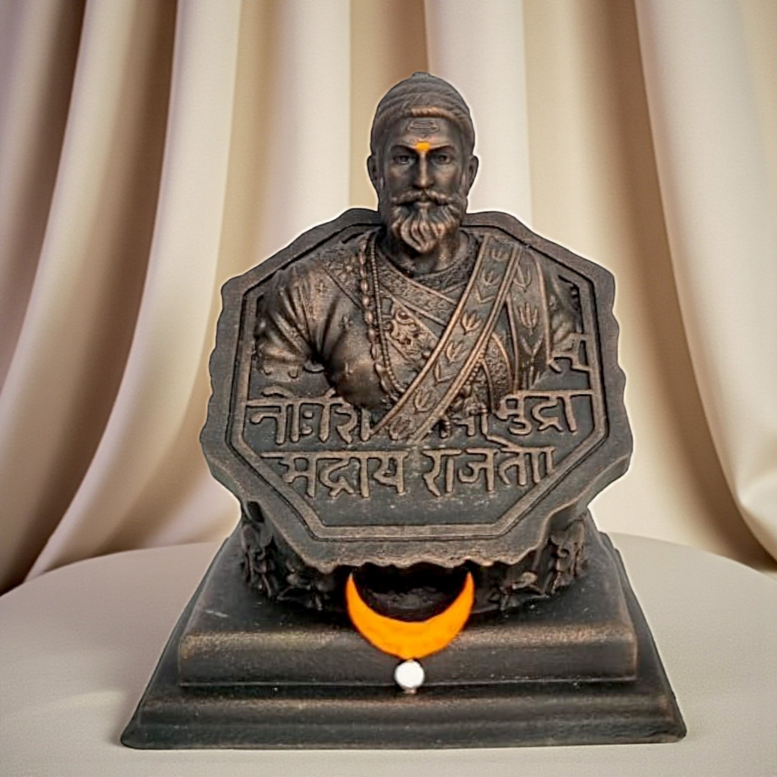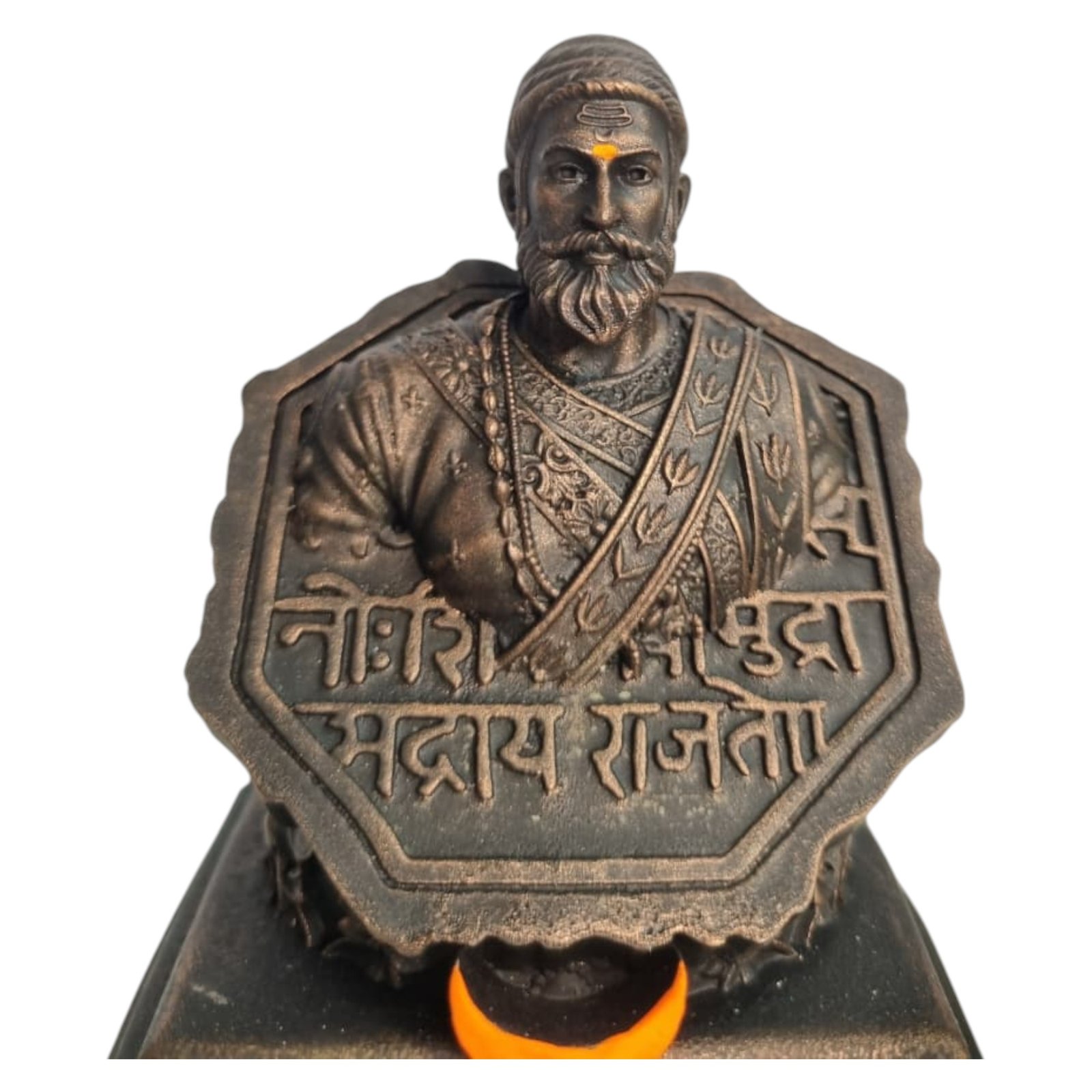 Honor the legacy of Chhatrapati Shivaji Maharaj with the KariGhar Shivamudra Statue (4 Inch, Bronze Finish). Designed with fine detailing, it beautifully represents the royal seal (Shivamudra) along with Shivaji Maharaj’s bust, symbolizing bravery, leadership, and justice. Its compact 4-inch size makes it a versatile piece for car dashboards, puja ghars, office desks, and home décor. The bronze metallic finish adds a touch of elegance, making it both a decorative showpiece and a symbol of inspiration. Also makes a wonderful gift for history lovers, Shivaji devotees, and patriots.